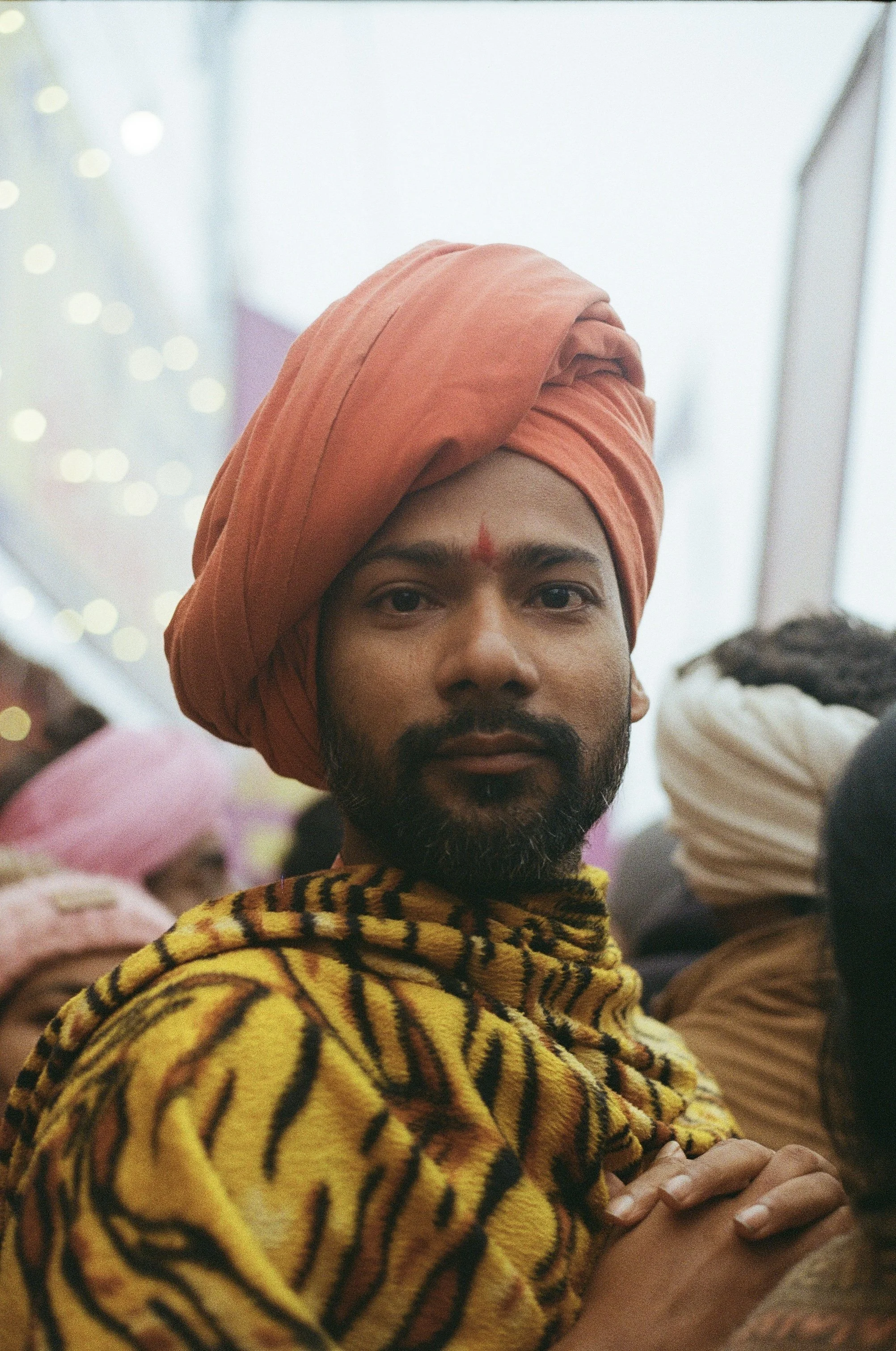 Portrait of Sadhu Aditya Giri at the Maha Kumbh Mela, January 2025. Aditya has been a close collaborator and mentor for the past two years. He has lived as a renunciate for fourteen years, including long periods in the wilderness with no possessions. His spiritual practice and deep relationship with nature form a central focus of this project, and he will collaborate with me during the research and experimental development of the video work.